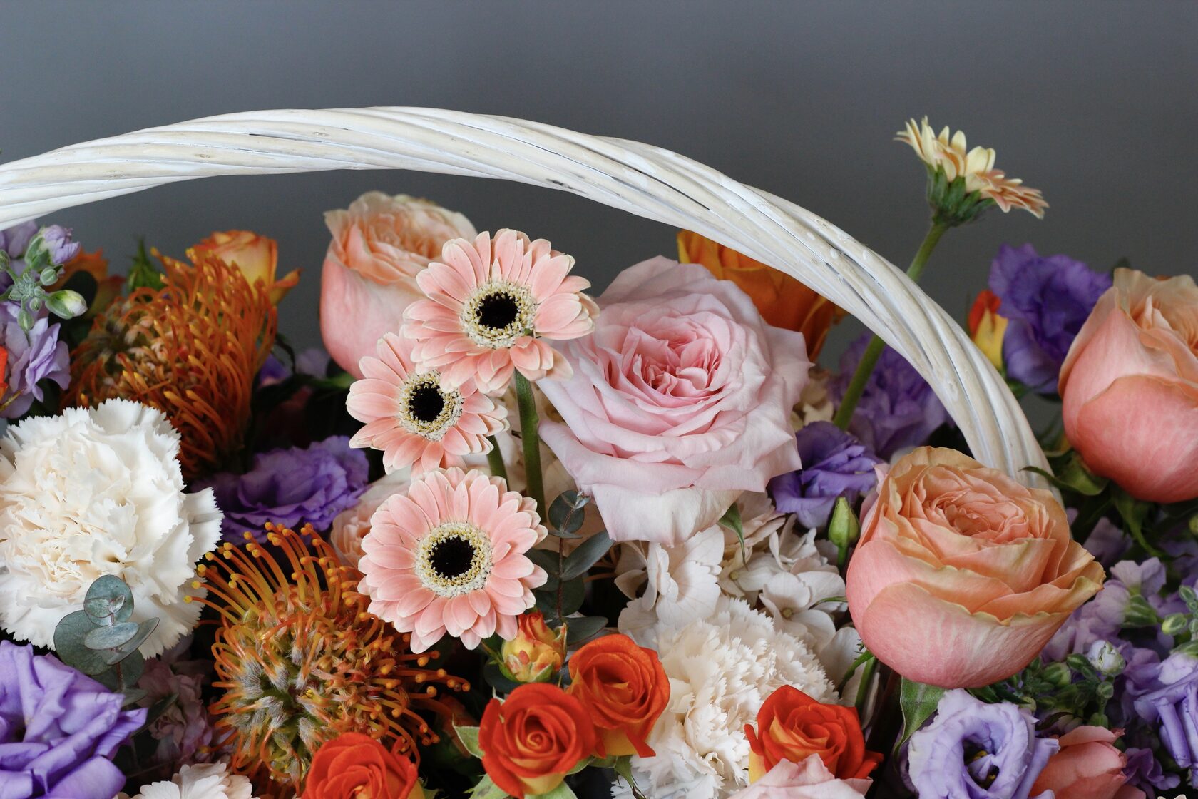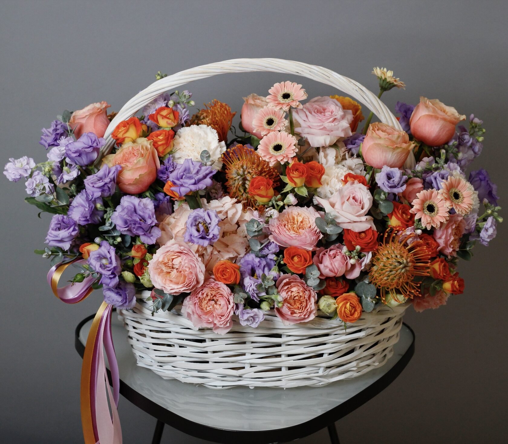 Яркая объемная авторская композиция в корзине.