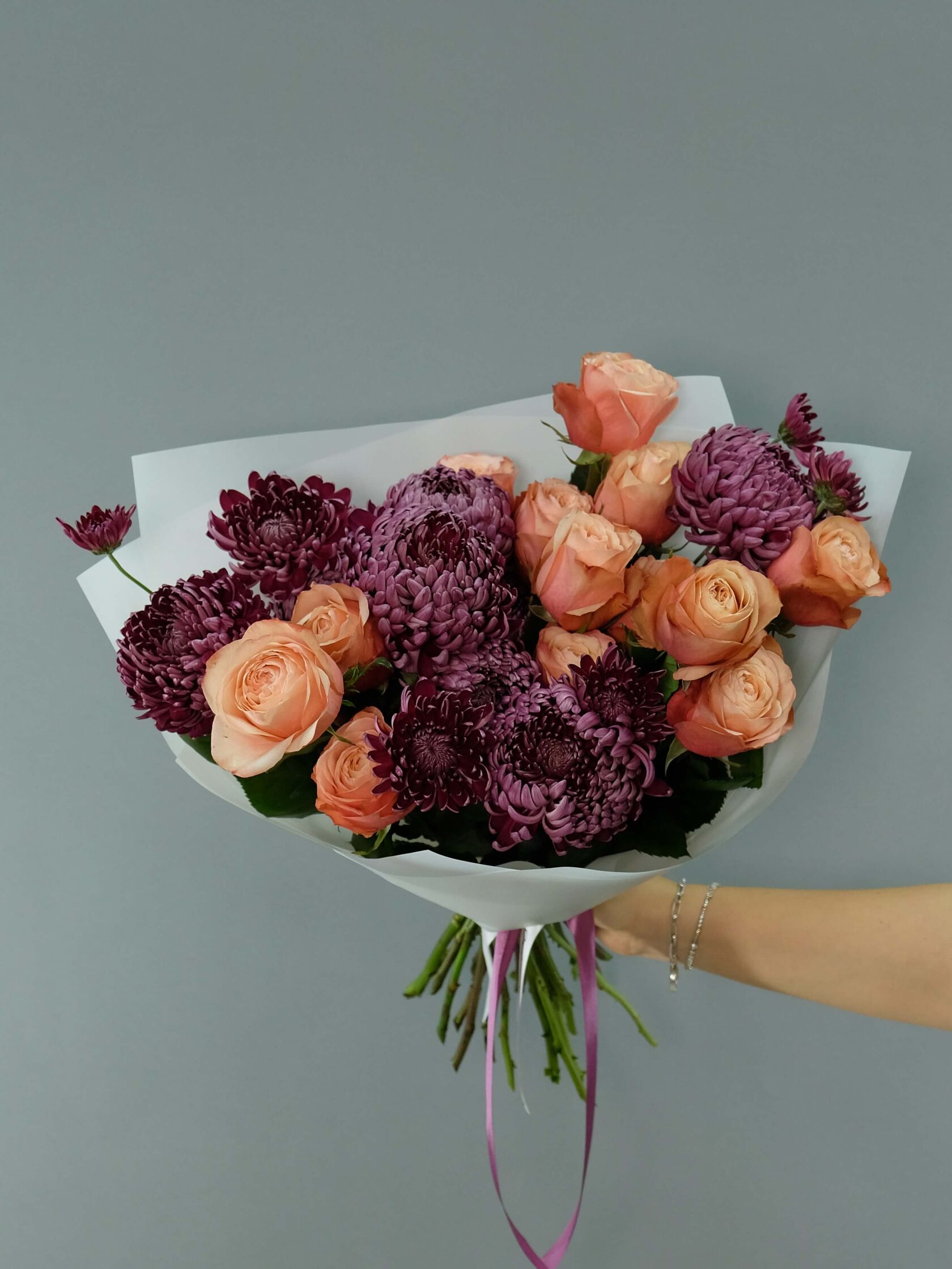 Не волнуйтесь, мы возьмём только свежие цветы для вашего букета, соберём стильную композицию и пришлём фото перед отправкой
