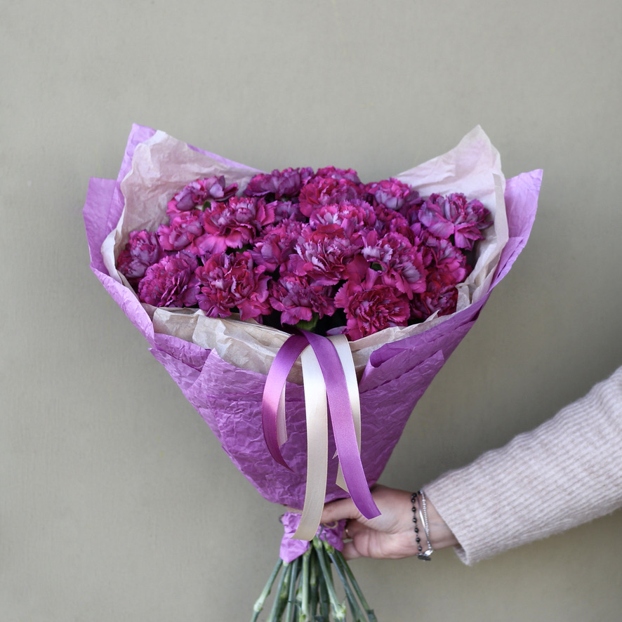 Монобукет из ярких диантусов оттенка фуксия.