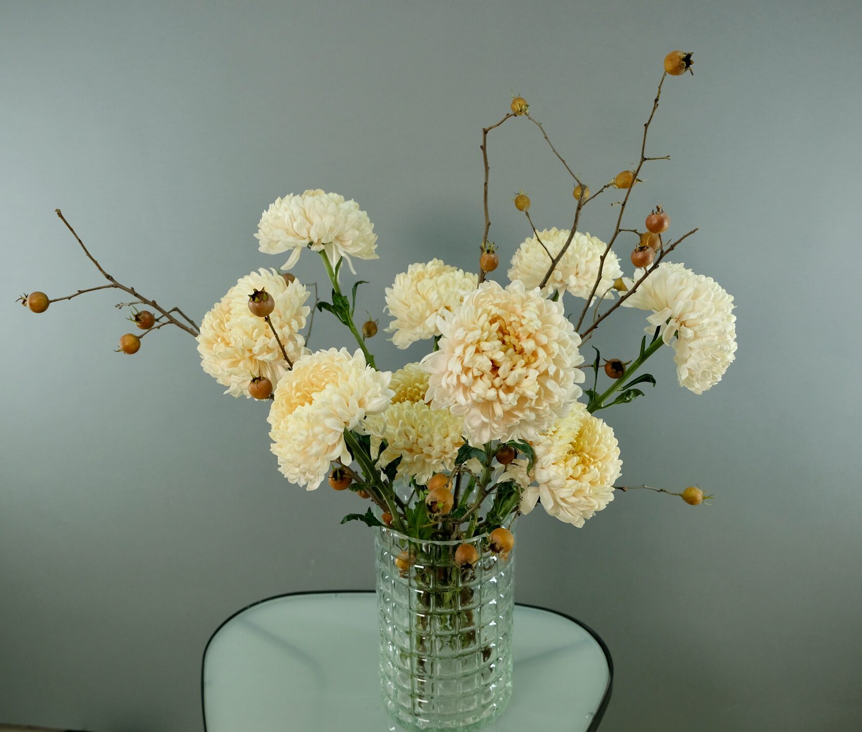 Кремовые хризантемы