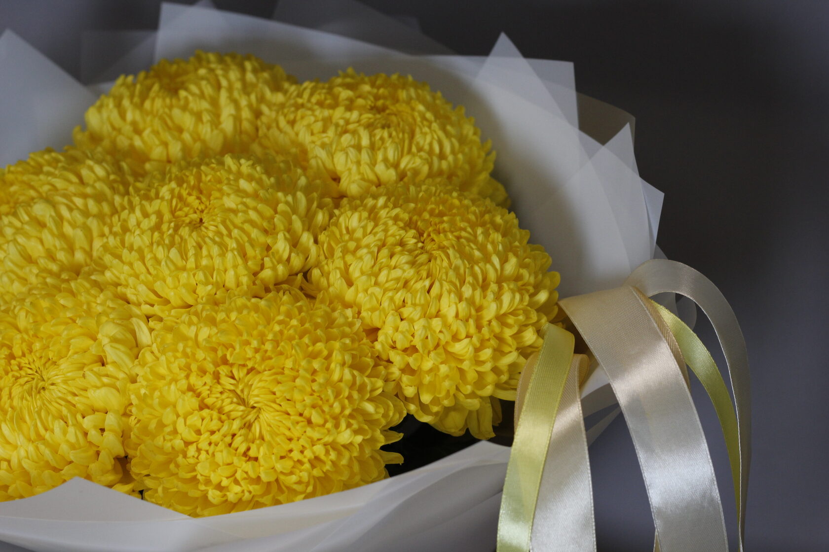 Монобукет из восхитительных ярко-лимонных сортовых хризантем.
