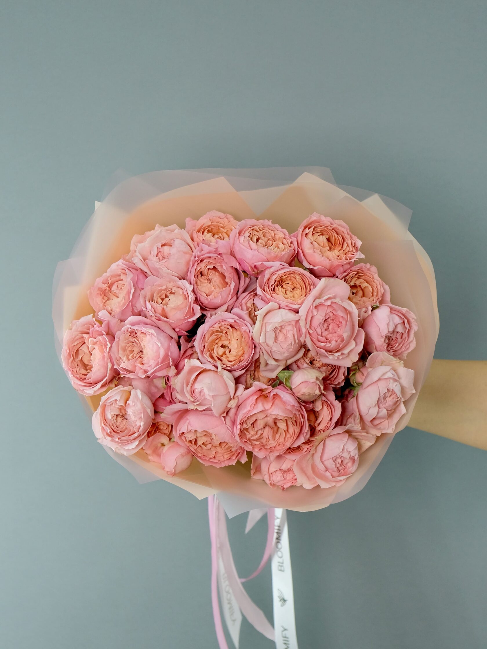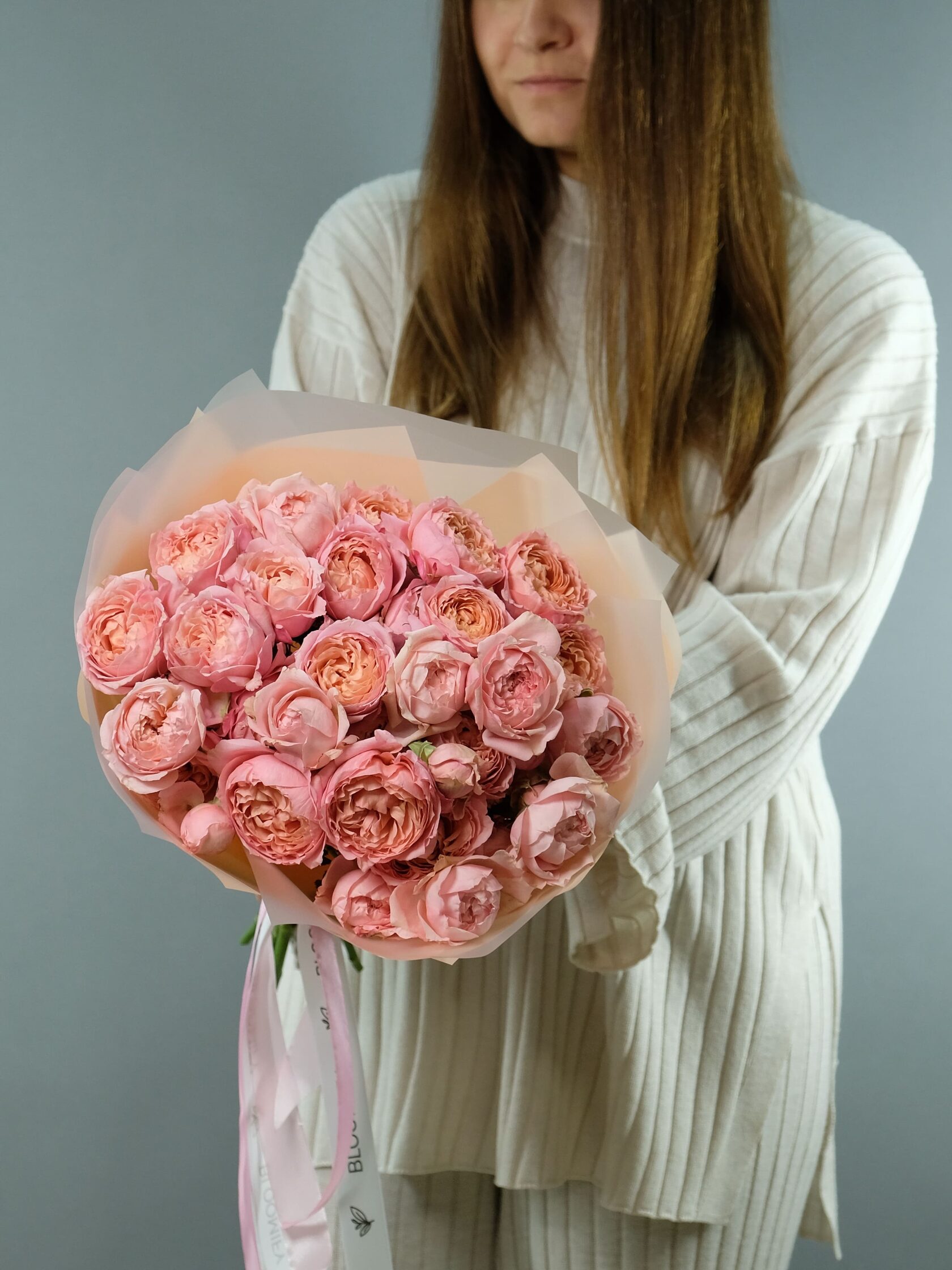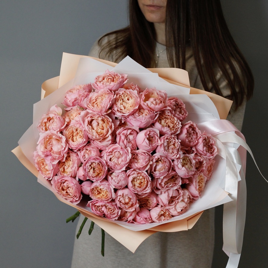 Монобукет из невероятной пионовидной кустовой розы Джульетта.