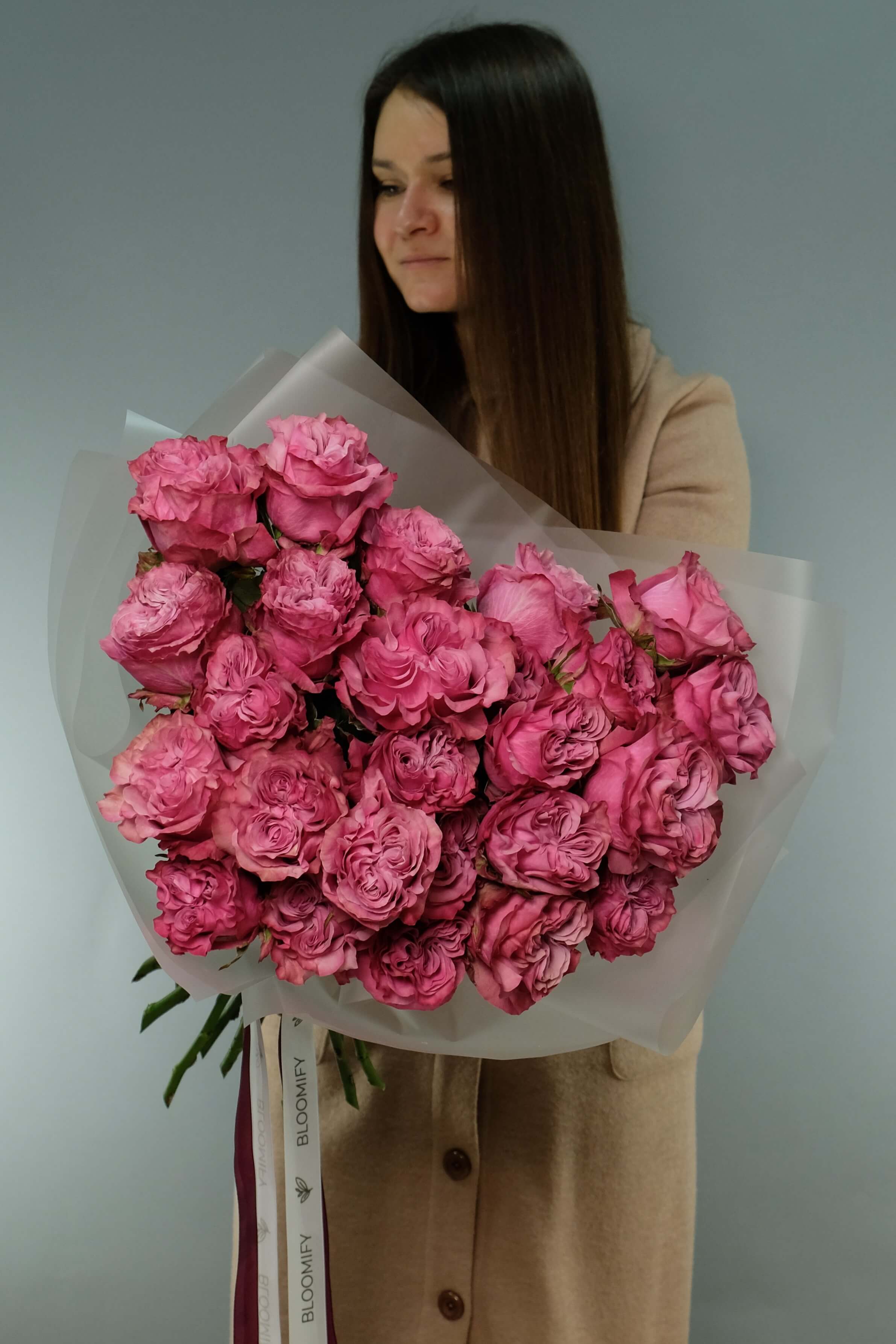 Монобукет из пионовидных эквадорских роз Кантри Блюз.