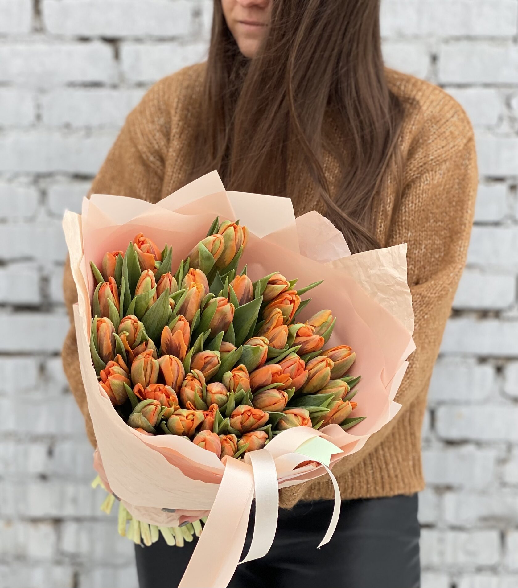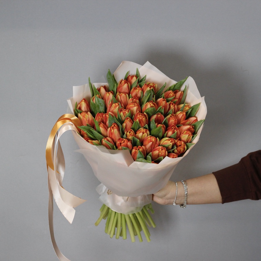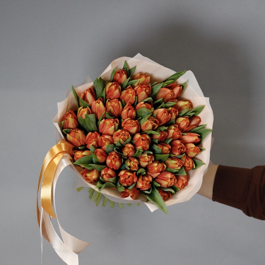 Пионовидные оранжевые тюльпаны