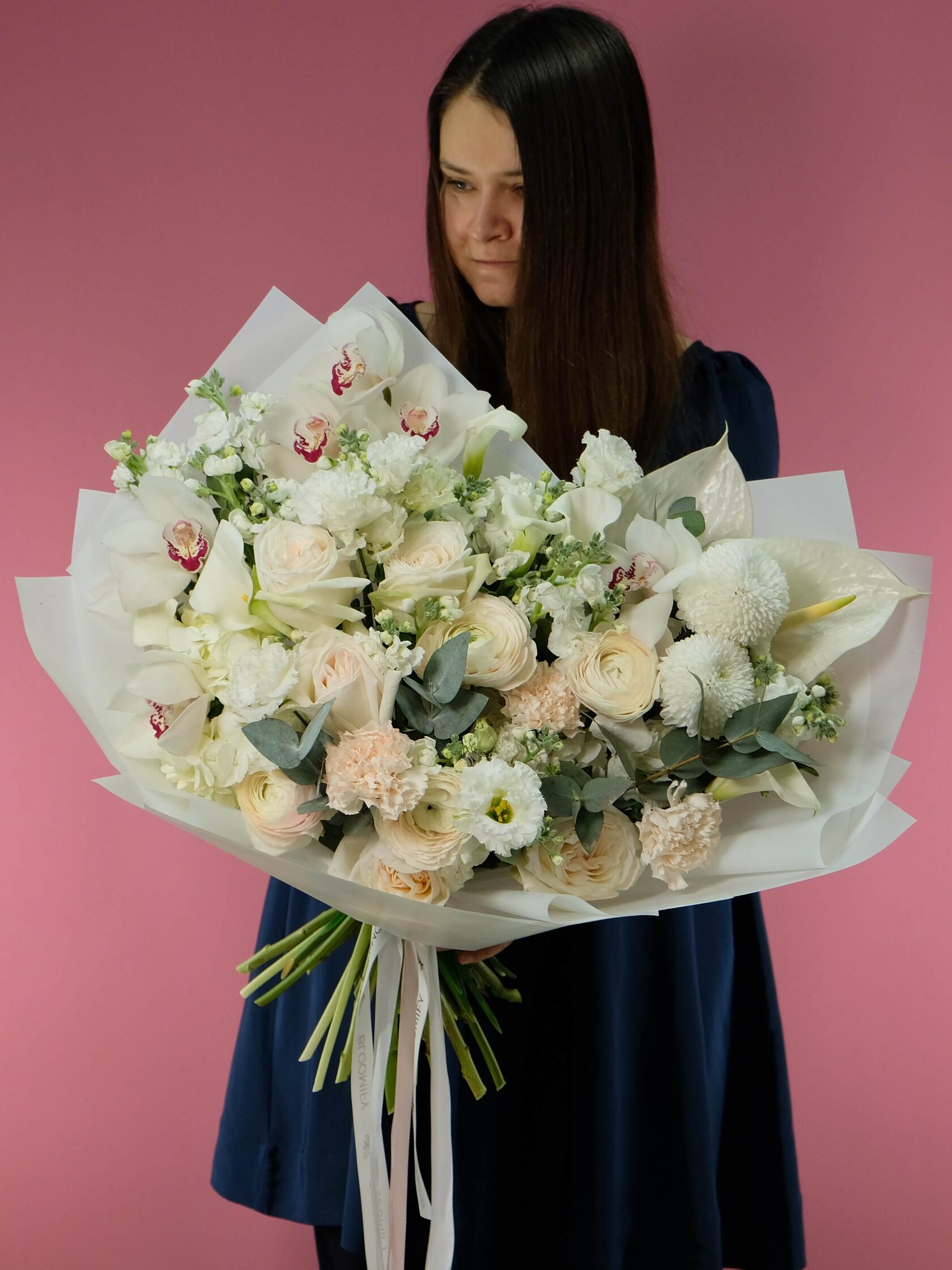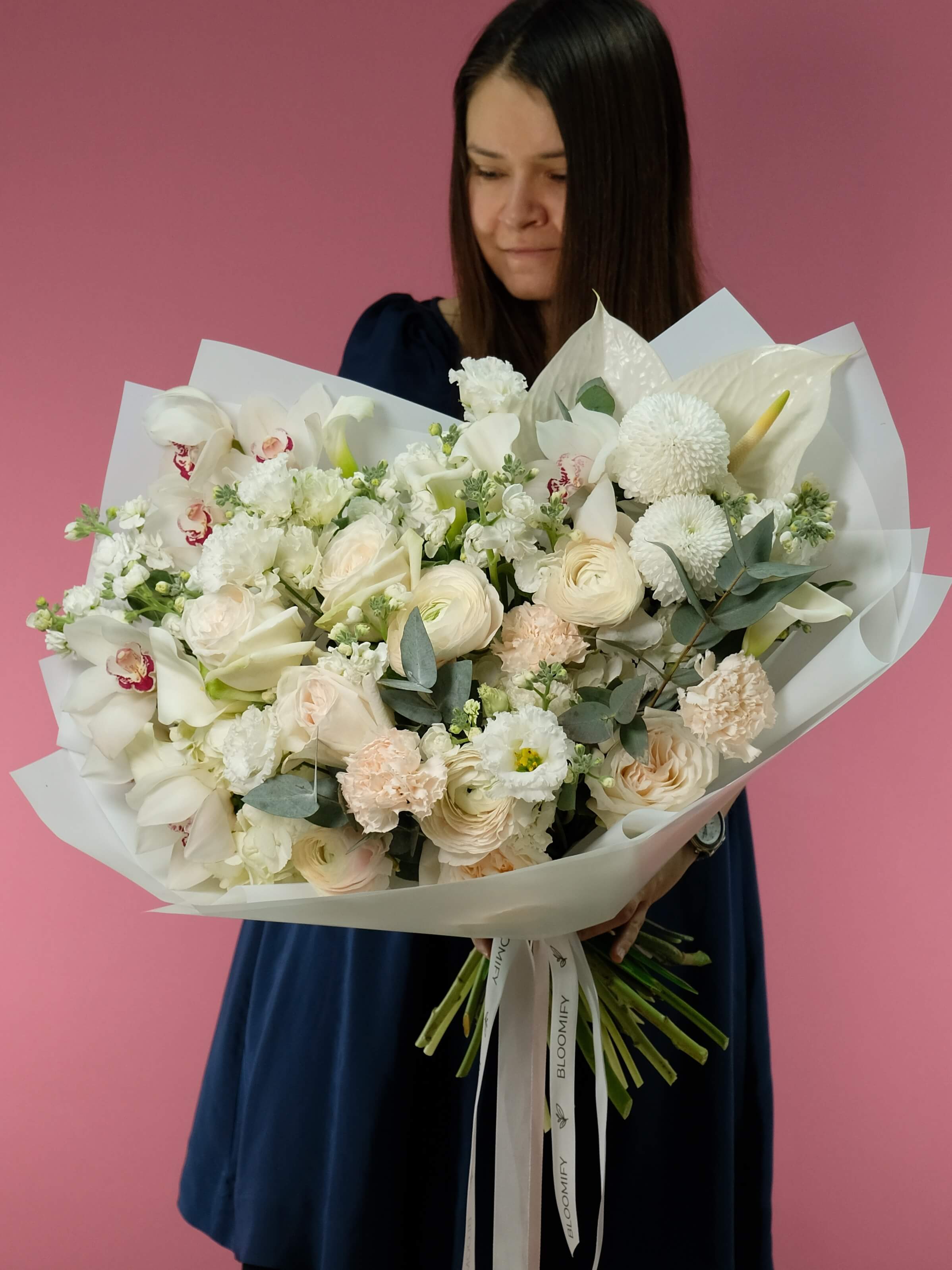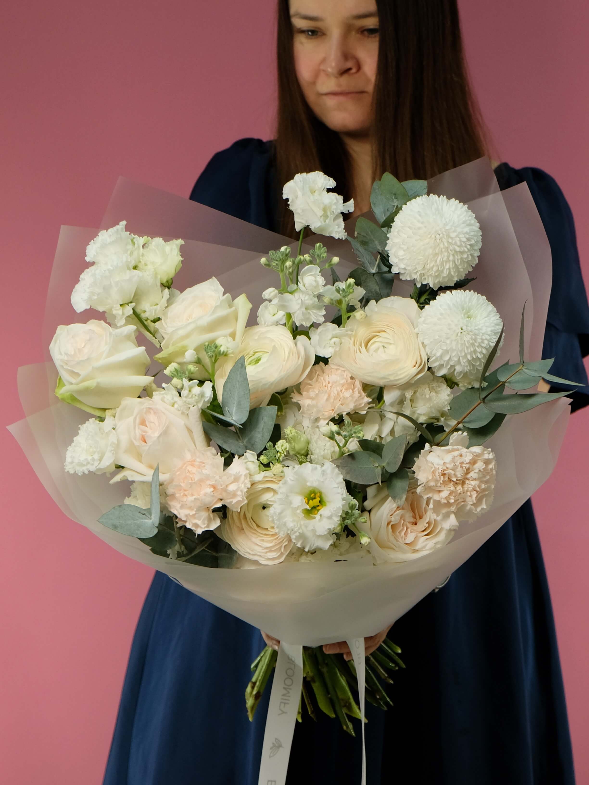 Монохромный стильный букет авторский букет с нежным ароматом.
