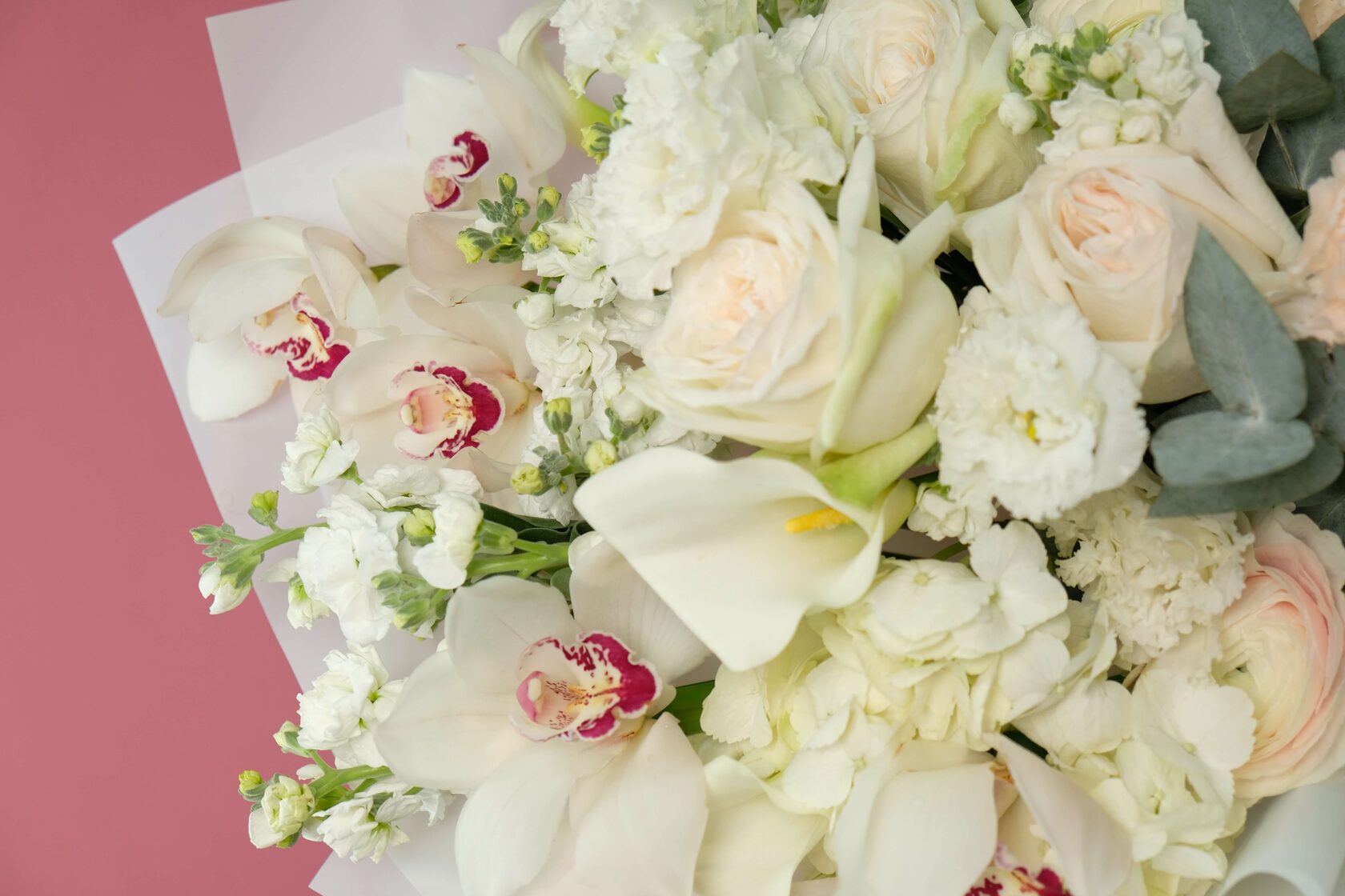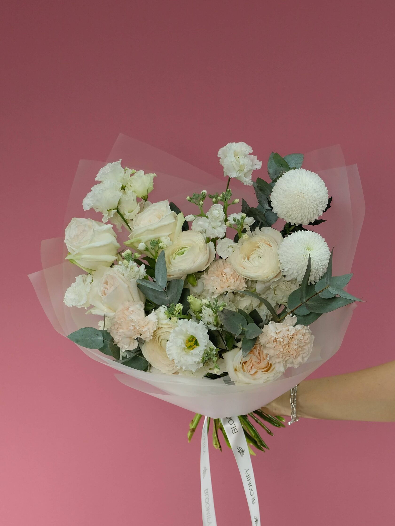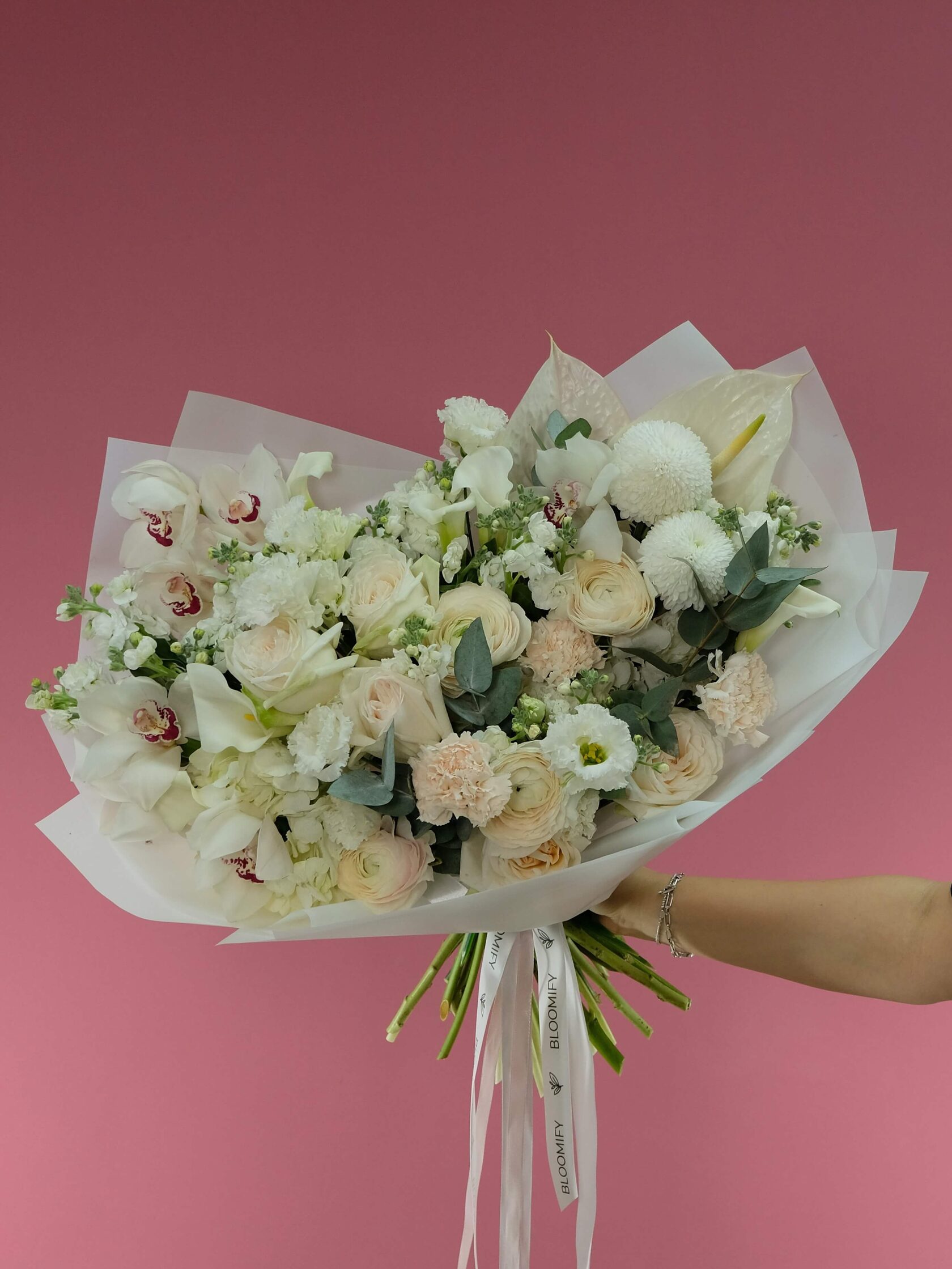 Монохромный стильный букет авторский букет с нежным ароматом.