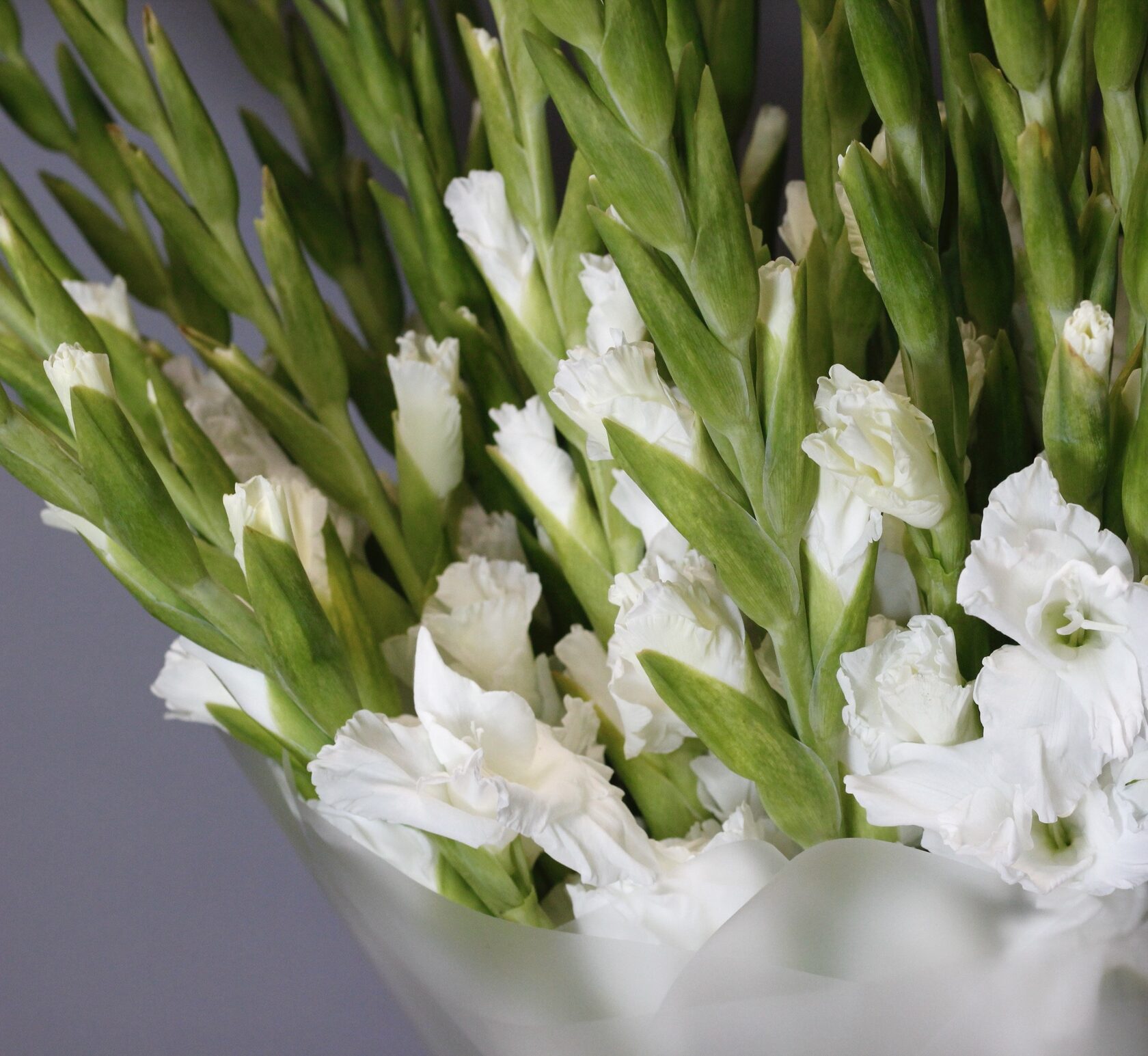 Монобукет из белых гладиолусов. Лаконичный и элегантный.