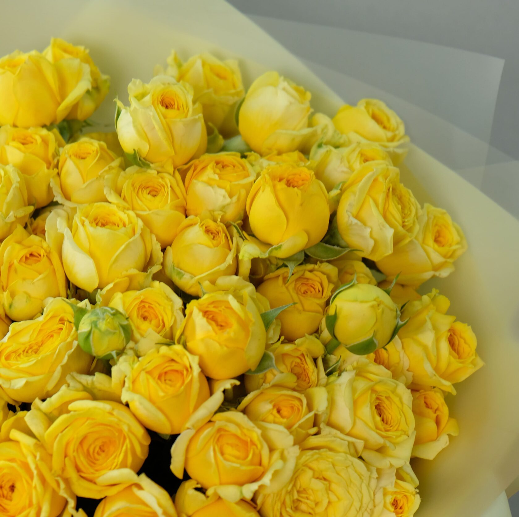 Монобукет из кустовых пионовидных ярко-лимонных роз с восхитительным соцветием.