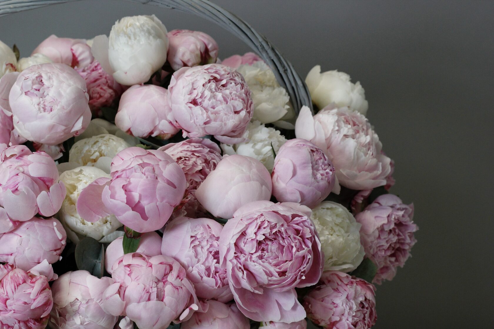 Самые желанные, абсолютные любимчики всех девушек - пионы, оформленные в композицию в корзине.
