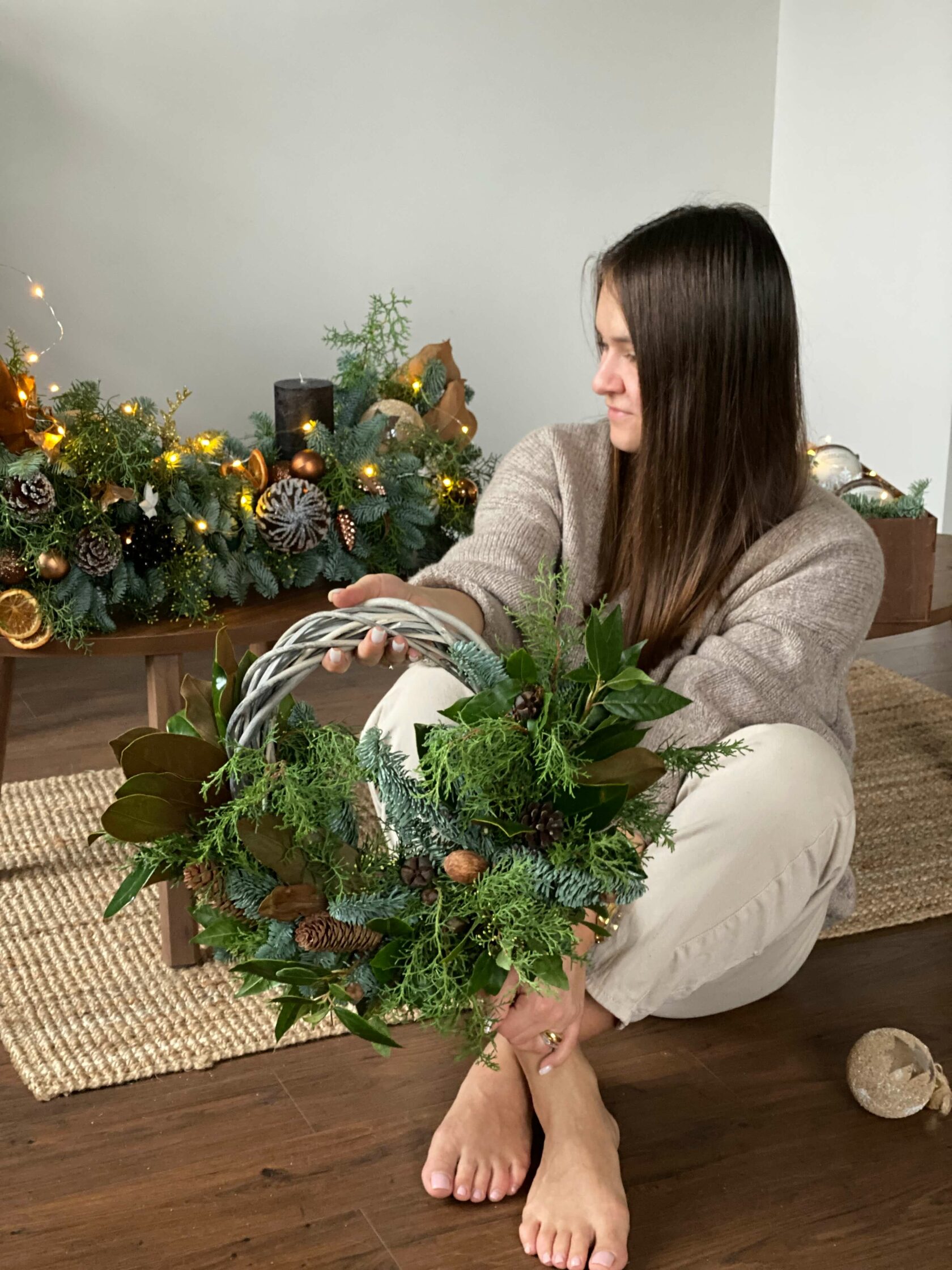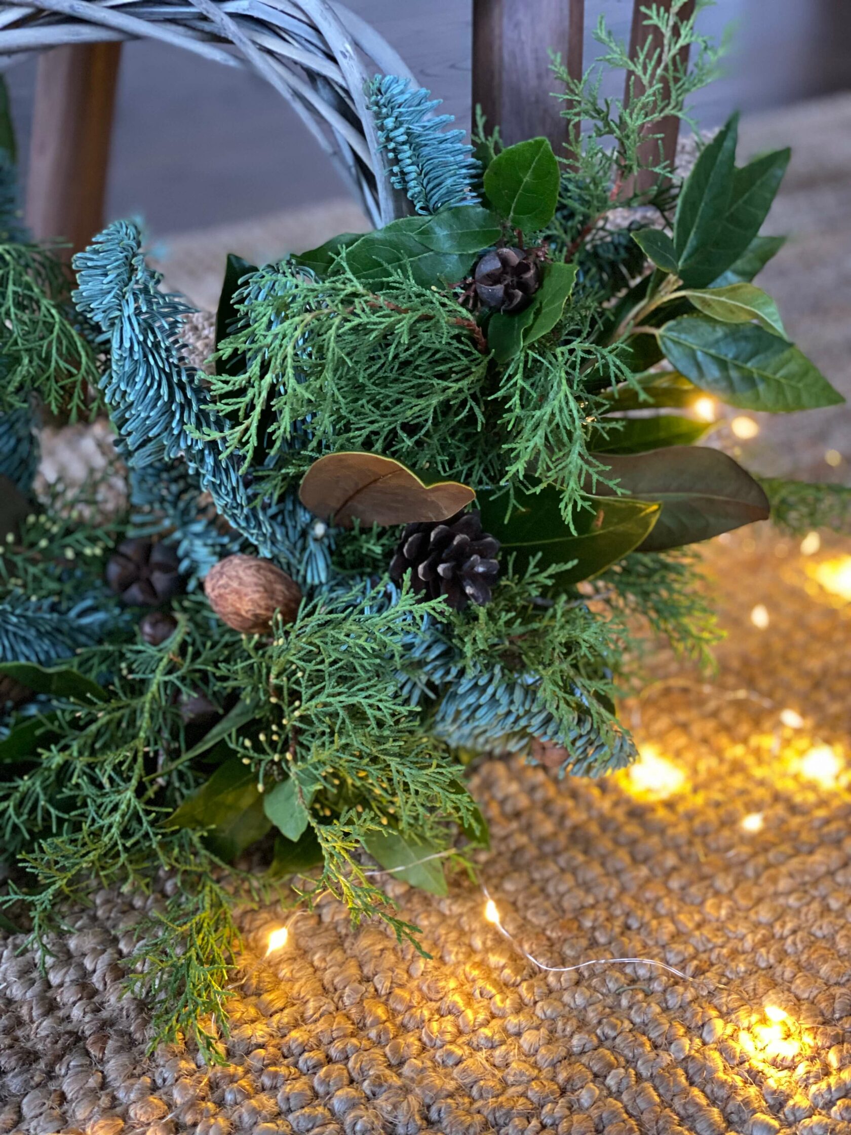 Декоративный венок из голубой датской ели, пихты, листьев магнолии и шишек. Этот веночек будет актуален не только для новогоднего декора пространства, а минималистичный дизайн прекрасно дополнит любой интерьер.#nbsp;