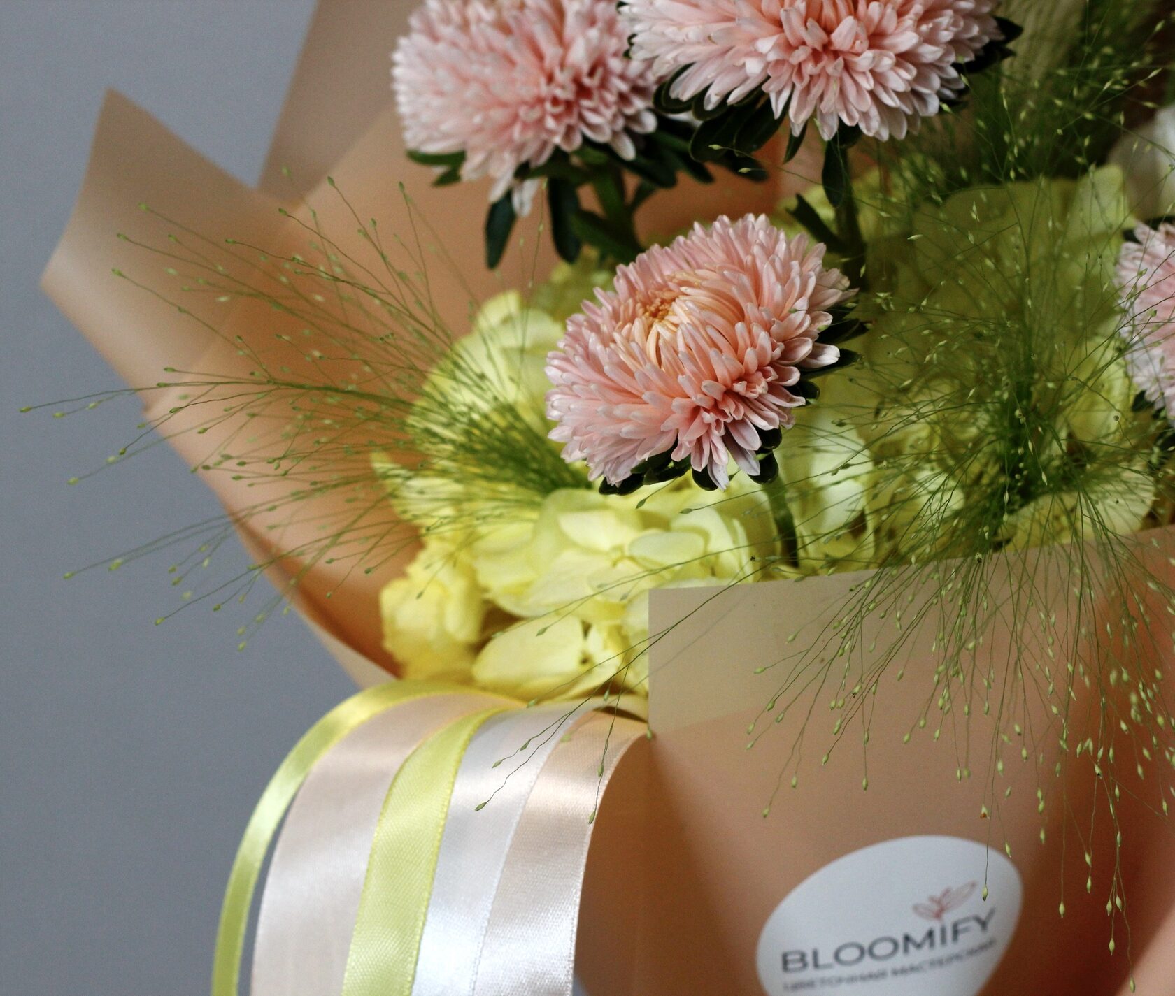 В составе: гладиолусы, гортензия, сортовые астры, паникум