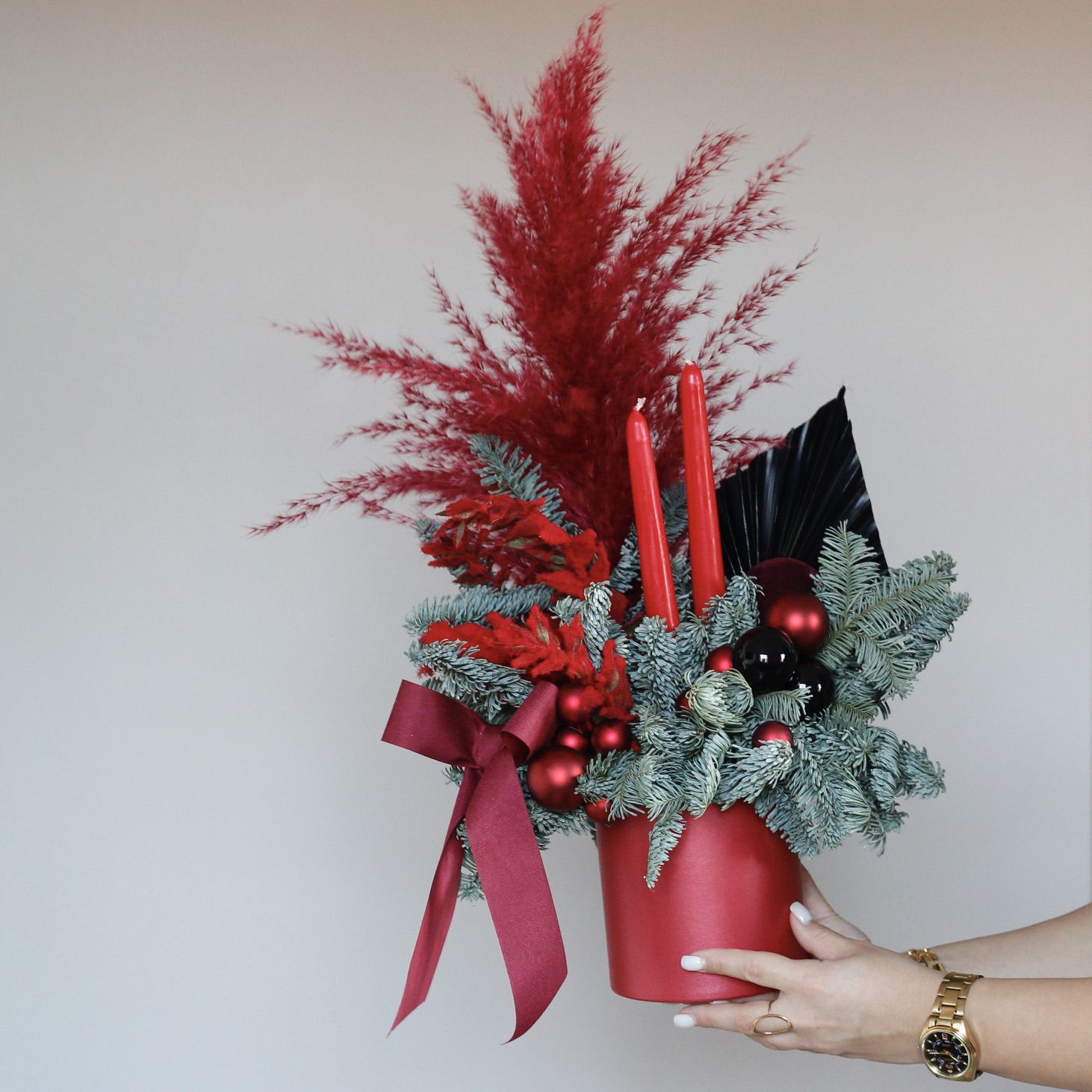 Декорирована стеклянными шарами и сухоцветами.#nbsp;