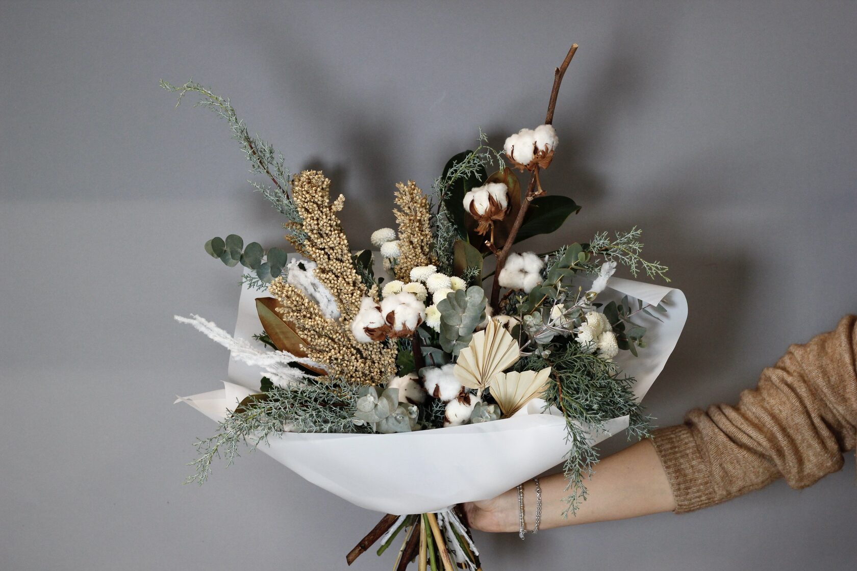 Уютный интерьерный букет в скандинавском минималистичном стиле - натуральные оттенки и природные фактуры - он прекрасно впишется в любой интерьер, наполнив атмосферу уютом и теплом, а его стойкий состав будет радовать очень долго.