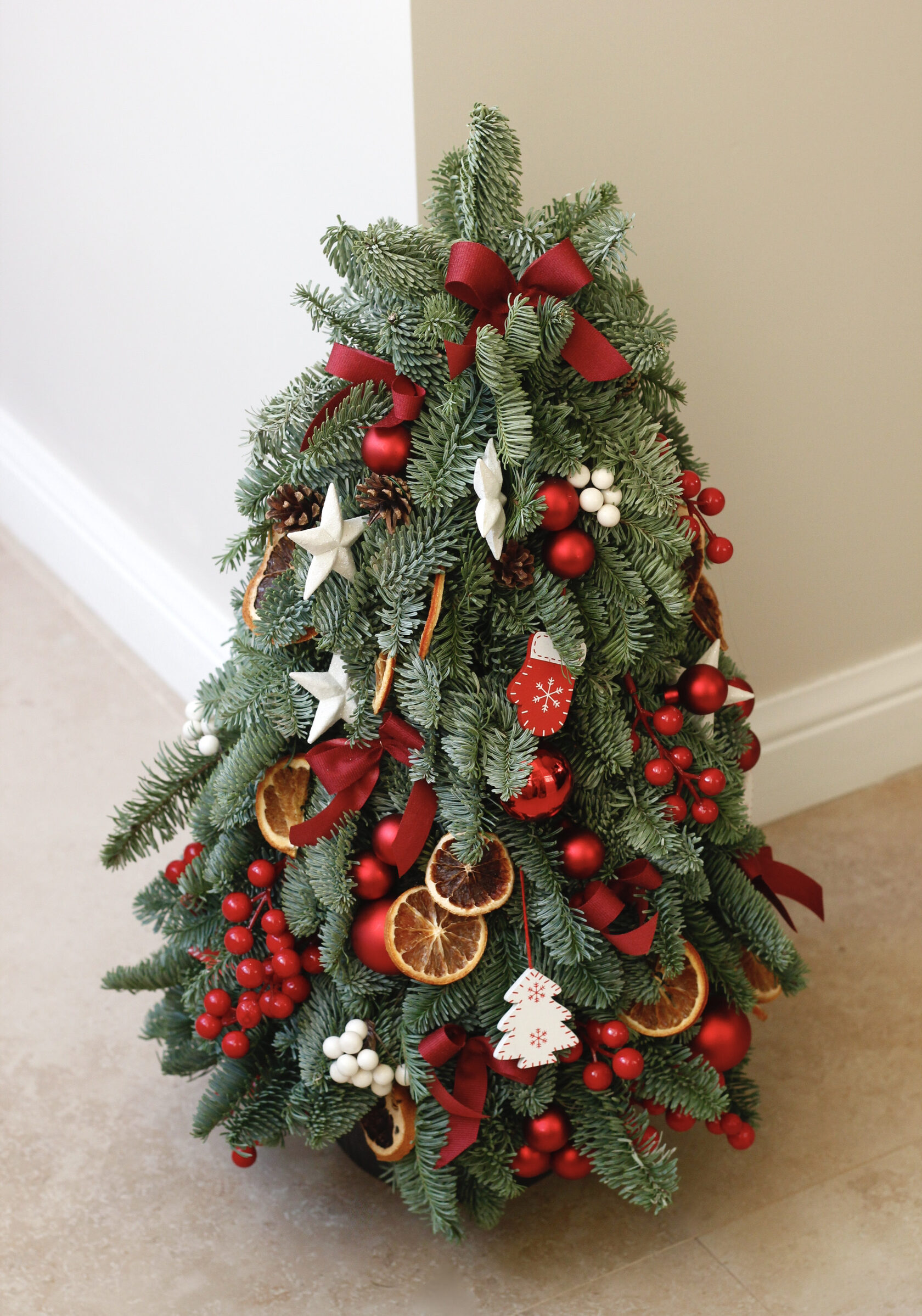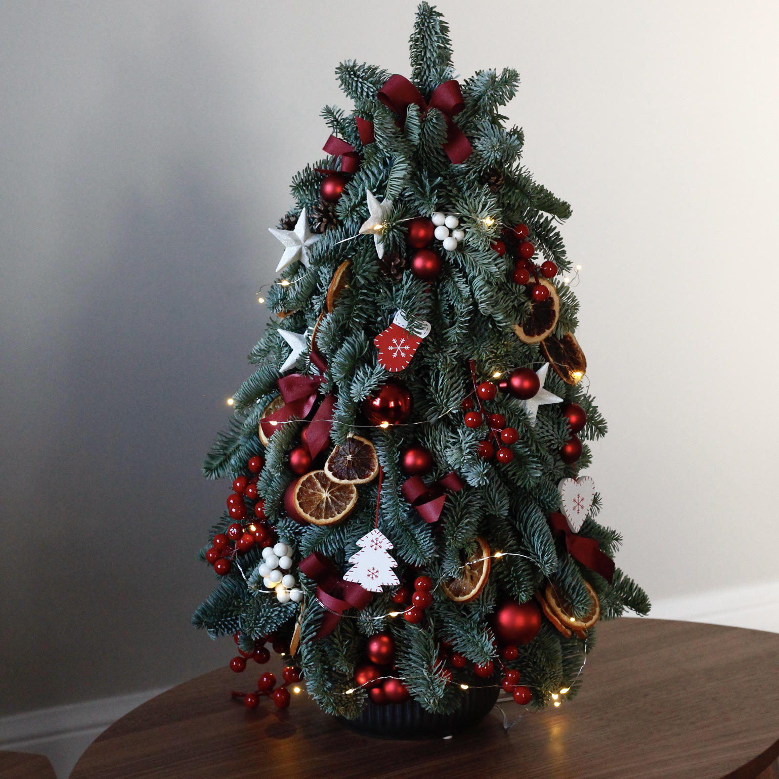 Авторская елочка ручной работы из живой датской голубой ели с декором в кашпо.