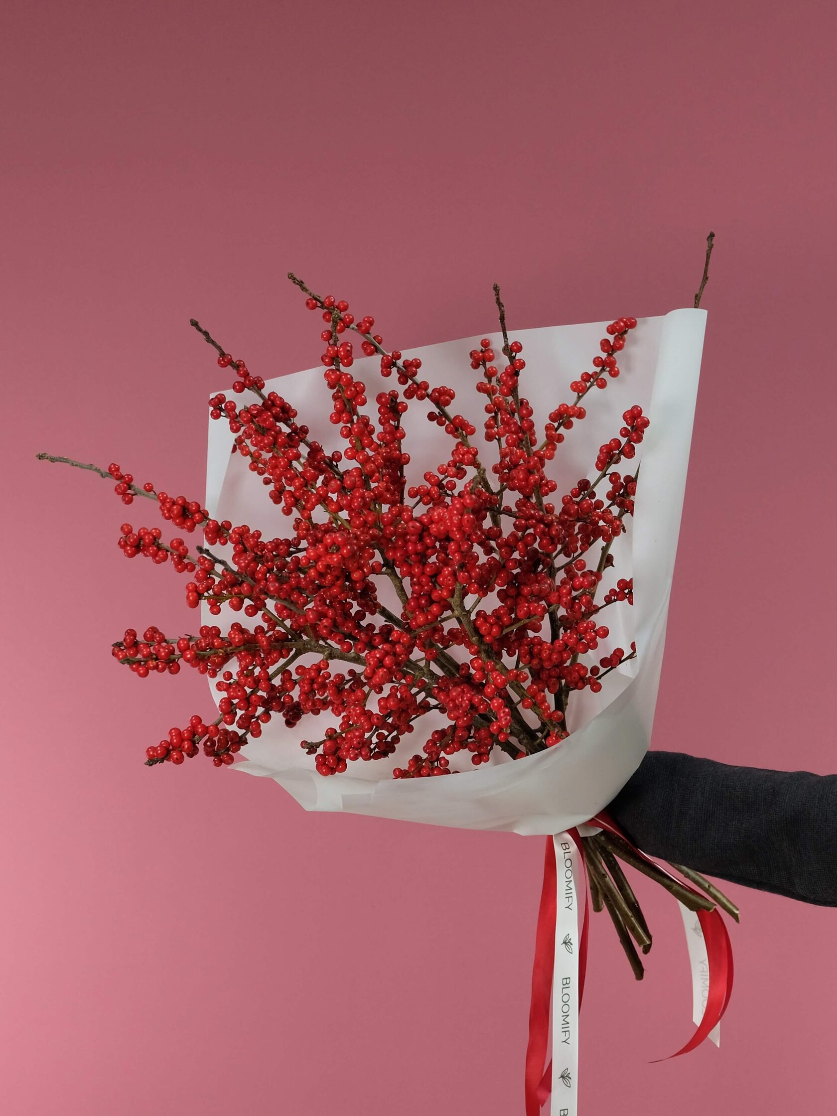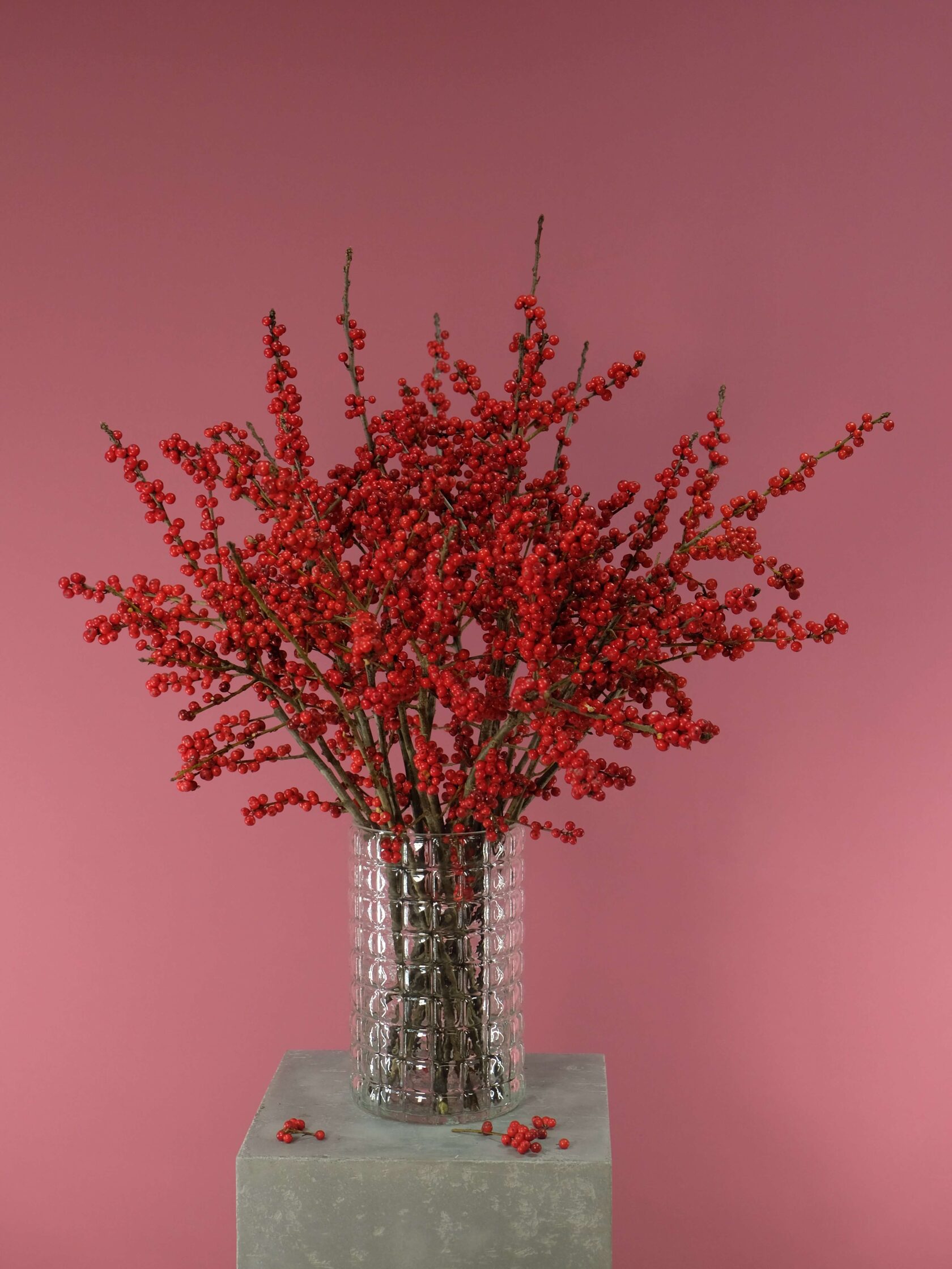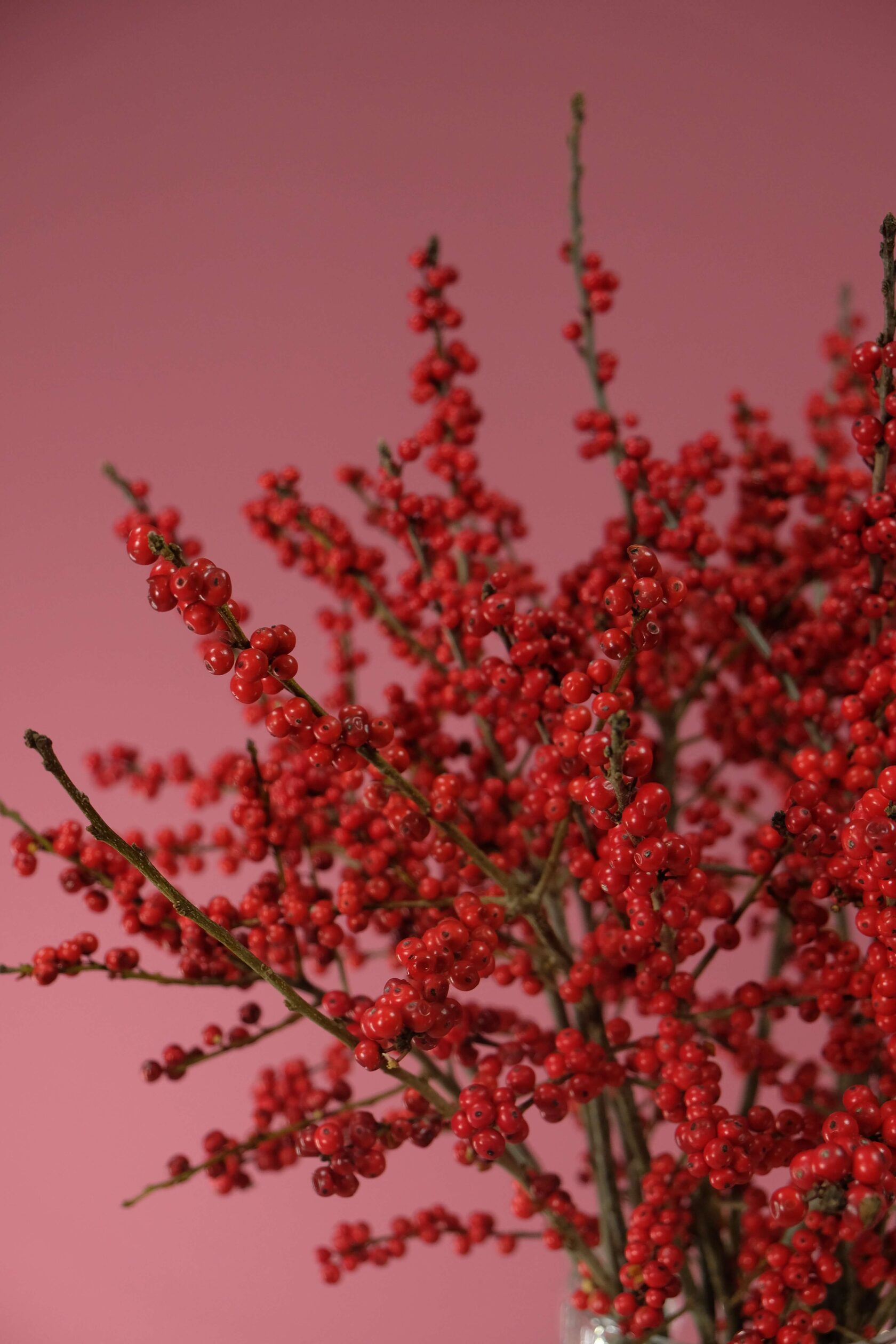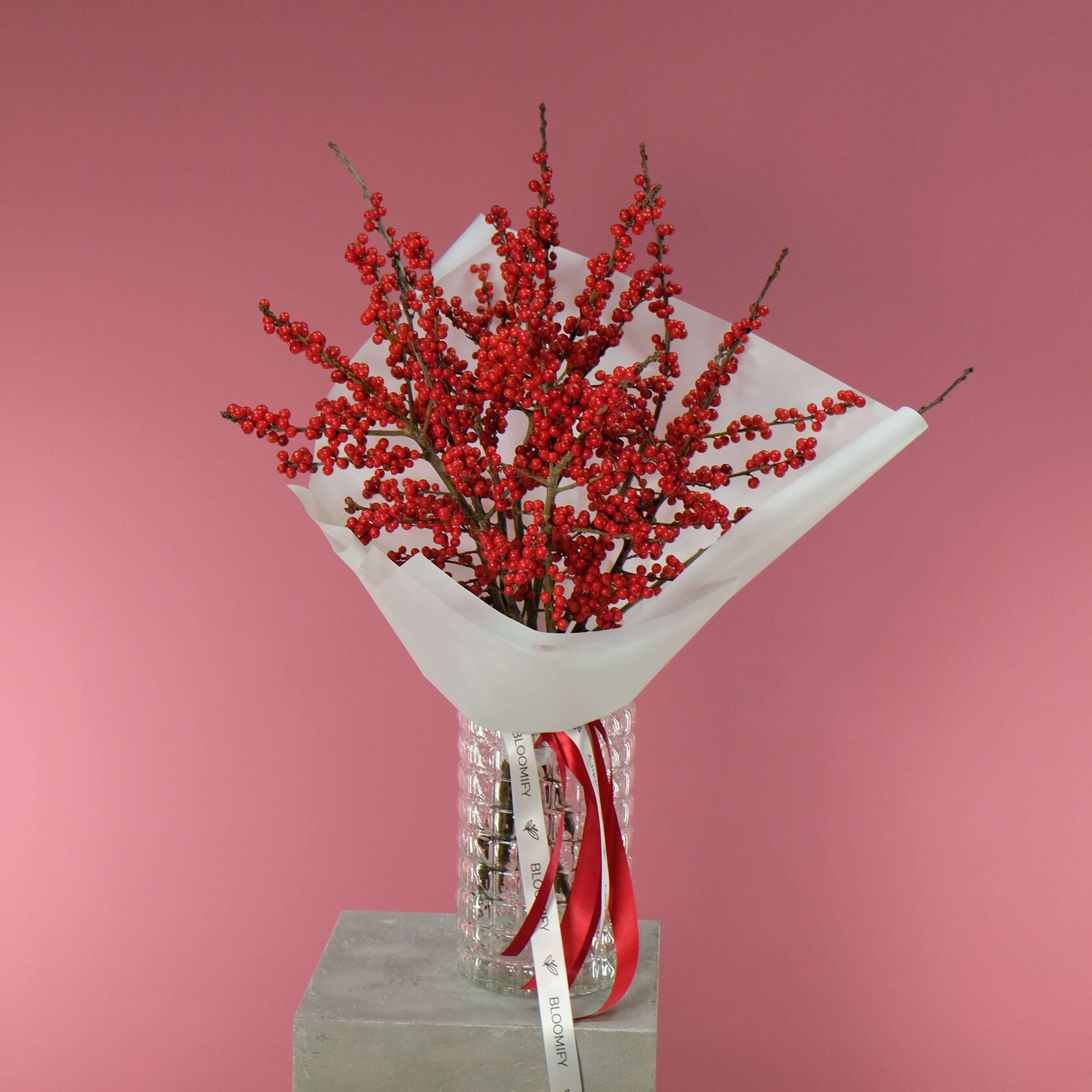Монобукет из стильных веток илекса с ягодами ярко-алого цвета. Веточки отличаются стойкостью и будут радовать очень долго, создадут уютную зимнюю атмосферу в вашем интерьере.