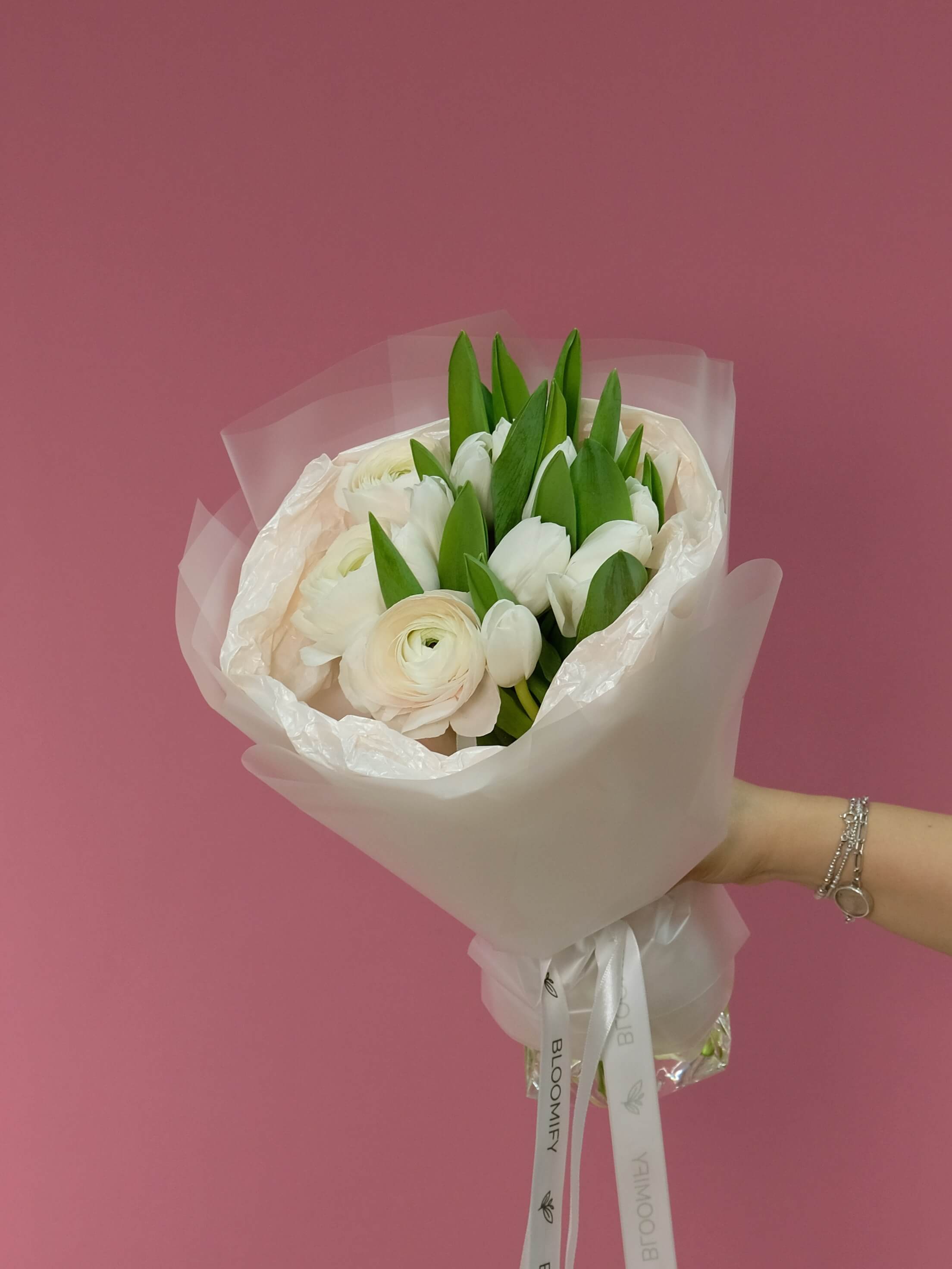 Не волнуйтесь, мы возьмём только свежие цветы для вашего букета, соберём стильную композицию и пришлём фото перед отправкой